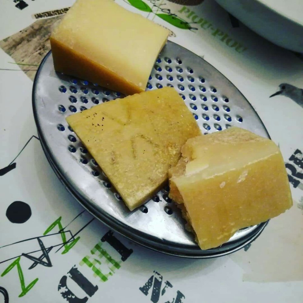 Insomma mentre gli altri si mangiano pezzi di parmigiano lui deve convivere con le croste.